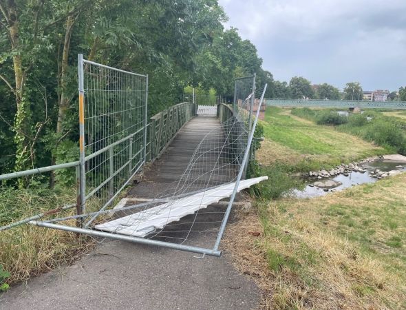 Eine Woche nachdem ein unbekannter Täter die Absperrgitter am Schachtelbachsteg entfernt und ins Bachbett geschmissen hat, wurde die Absperrung erneut beschädigt
