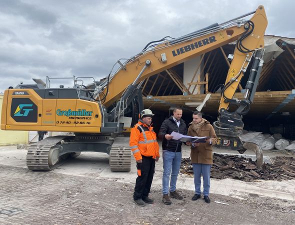 Es ist soweit: Der Abriss des bisherigen REWE-Einkaufsmarktes hat begonnen.