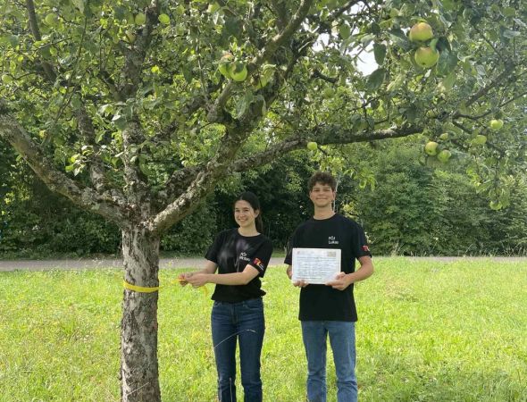 Ein gelbes Band am Baum heißt: ernten erlaubt. Egal ob Apfel, Birne oder süße Zwetschge: Dank des gelben Bandes ist an diesen Bäume Obst pflücke…