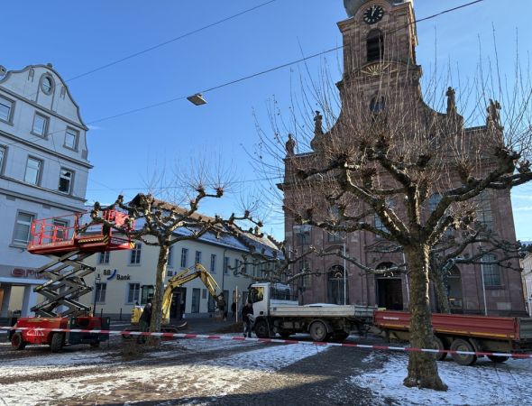 Die Platanen in der Rastatter Innenstadt stehen wieder im Fokus der jährlichen Pflegemaßnahmen.