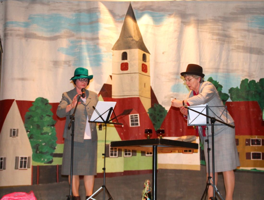Das Dorfgeschehen wurde bereit 2013 durch den Kakao gezogen, hier Andrea Bohn mit Karin Storz.
