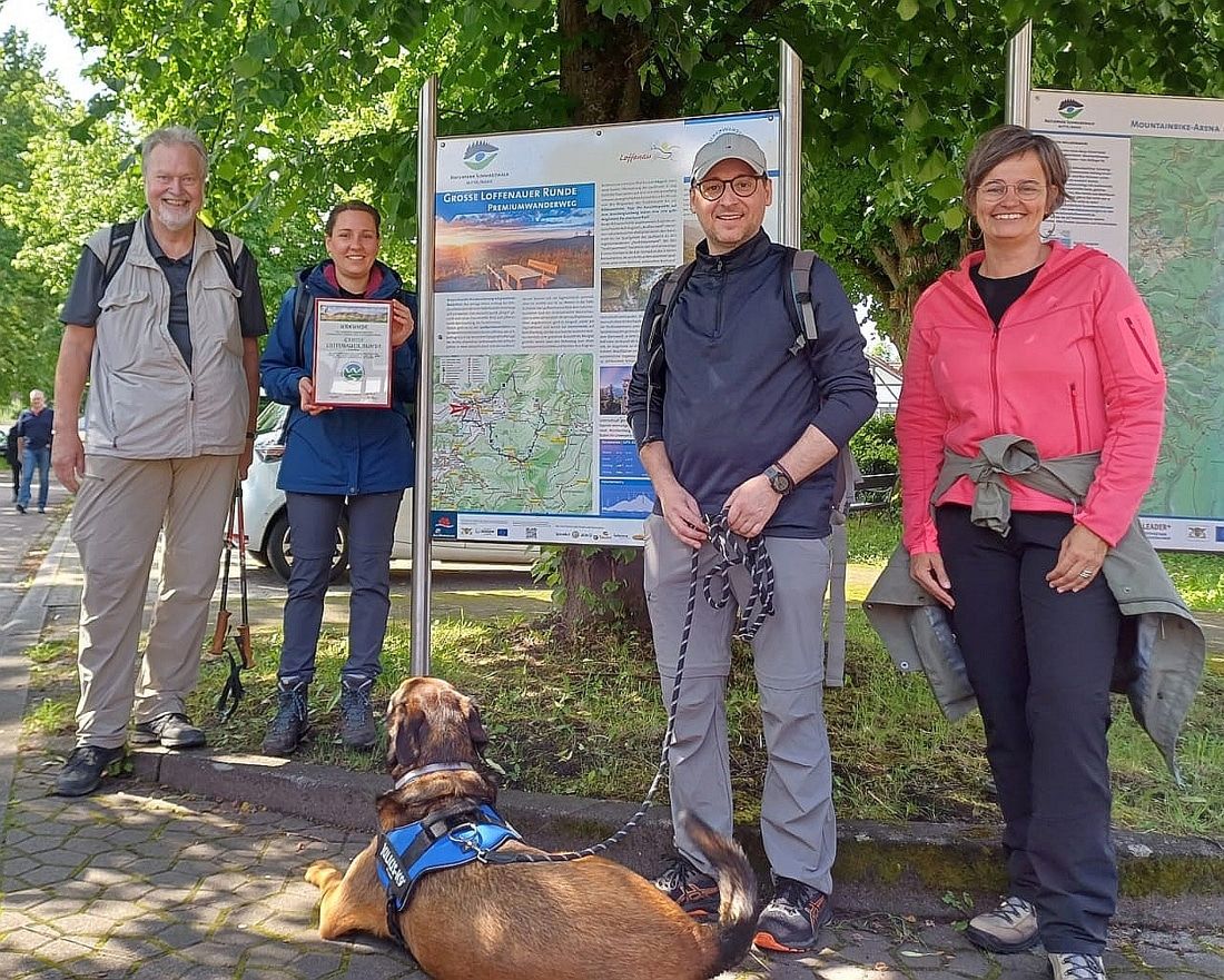 Am Donnerstag, den 23. Mai 2024 wurde in Loffenau im Murgtal der neue Premium-Wanderweg „Große Loffenauer Runde“ offiziell eröffnet. Jochen Becker vom Deutschen Wanderinstitut übergab dem Loffenauer Bürgermeister Markus Burger feierlich die Urkunde, anschließend nahmen VertreterInnen der Gemeinde und geladene Gäste sowie JournalistInnen an einer geführten Tour entlang der Großen Loffenauer Runde teil.