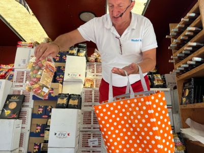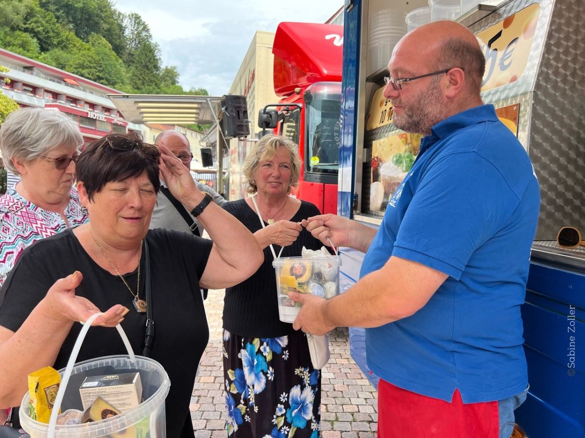 „Fisch ist bei diesen Temperaturen der ideale Snack“, weiß Veranstalter Achim Borgschulze zu berichten, der mit den Marktschreiern nach Bad Herrenalb gekommen ist, um den Schwarzwäldern mal was anderes zu bieten. Und tatsächlich ist das Interesse riesengroß. Ob Schokolade, Nudeln, Wurst, Käse oder Fisch, die Taschen der Besucher füllen sich mit vielfältigen Leckereien. „Ich bringe die große Ladung Käse meinen Nachbarn mit“, so eine Frau, die zudem am Nudelstand die große Auswahl bewundert.