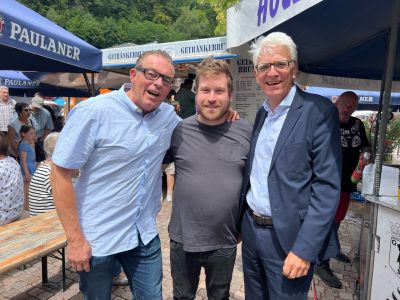 Bürgermeister Klaus Hoffmann und Wurst Achim auf dem Hamburger Fischmarkt in Bad Herrenalb