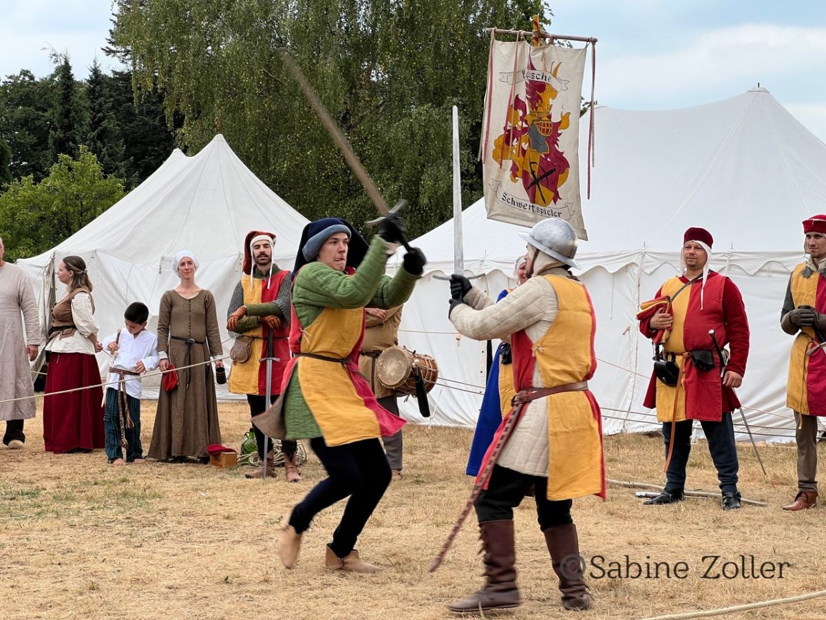 Schwertkämpfe die auf dem Turnierplatz ausgefochten werden sind die Attraktion für kleine und große Besucher