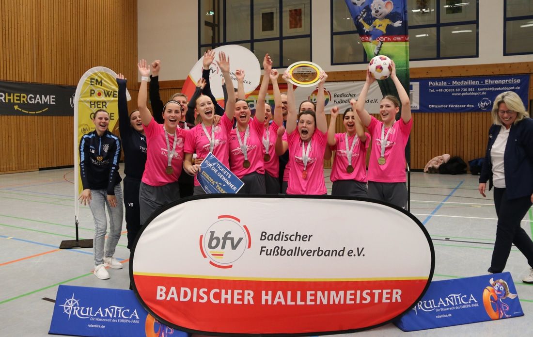 Bei der folgenden Siegerehrung ging der Dank an die Partner und Sponsoren, die die Badischen Futsal-Meisterschaften unterstützen: Europa-Park mit der Wasserwelt Rulantica, Derbystar, KOMM MIT und Pokaldepot. Die Siegerinnen der SpG Büchig/Neibsheim feierten ihren Titelgewinn mit der Meisterschale, Freikarten für den Europa-Park und einem Ticket für die Süddeutsche Meisterschaft der Frauen, die ebenfalls am 7. März in Ehningen ausgetragen wird.