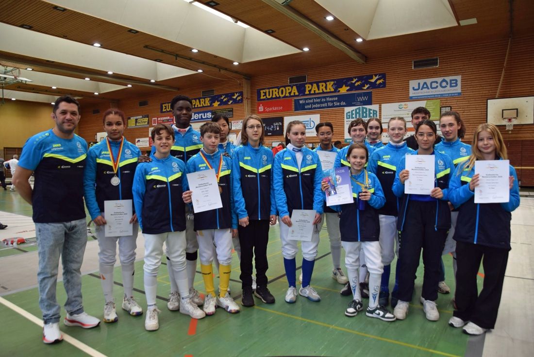 Im vorderen Drittel konnte sich auch die gastgebende SVW-Fechtabteilung und die FT 1844 Freiburg mit jeweils drei Podestplätzen behaupten. Bei den südbadischen Meisterschaften holte Waldkirch mit Mila Masinde Silber und mit Marc Jäger Bronze. In der U15 drang die letztjährige DM-Dritte souverän in das Finale gegen Viktoria Nikiforov durch. Doch hier musste Mila Masinde die Überlegenheit der Ditzingerin mit 11:15 Treffern anerkennen, was der Waldkircherin immer noch den südbadischen Vizemeistertitel einbrachte.