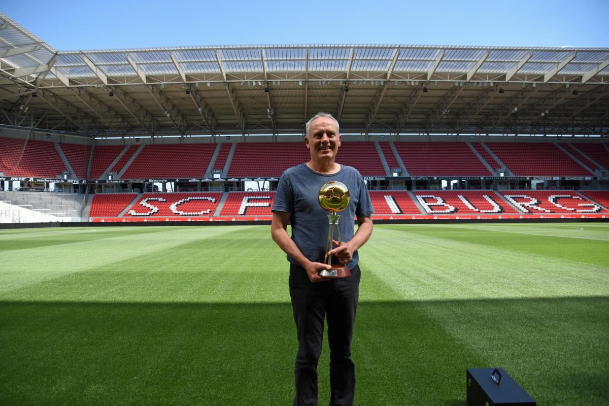 Der 57-jährige Coach des SC Freiburg gewann souverän vor Oliver Glasner von der Eintracht Frankfurt und Steffen Baumgart vom 1. FC Köln. Seit elf Jahren hat er jegliche Krisen inklusive eines Abstiegs gemeistert, er hat Freiburg stabilisiert und die Mannschaft zu einem Spitzenteam geformt. Im Zuge der heutigen Pressekonferenz vor dem Spiel gegen Dortmund wurde ihm die Trophäe von kicker-Chefredakteur Rainer Franzke und kicker-Reporter Carsten Schröter-Lorenz überreicht.