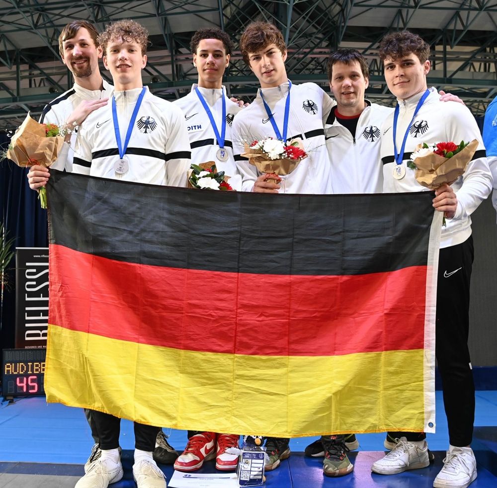 „Phänomenal“, so der Ex-Waldkircher und heute für Heidelberg startende Degenfechter Julius Ruppenthal und kann es kaum fassen. Das deutsche U20 Herrendegen-Team mit Ole Petersen (Leipzig), Jakob Stange (Solingen) und Matthew Bülau (Heidenheim) und Julius Ruppenthal (Heidelberg/Waldkirch) gewann bei den Europameisterschaften in Italien Silber. Lange Zeit konnte die Mannschaft das Finalgefecht ausgeglichen gestalten, lag sogar kurzzeitig vorne. Doch gegen Schluss setzte sich Italien mit 45:40 Treffern durch und holte Gold.