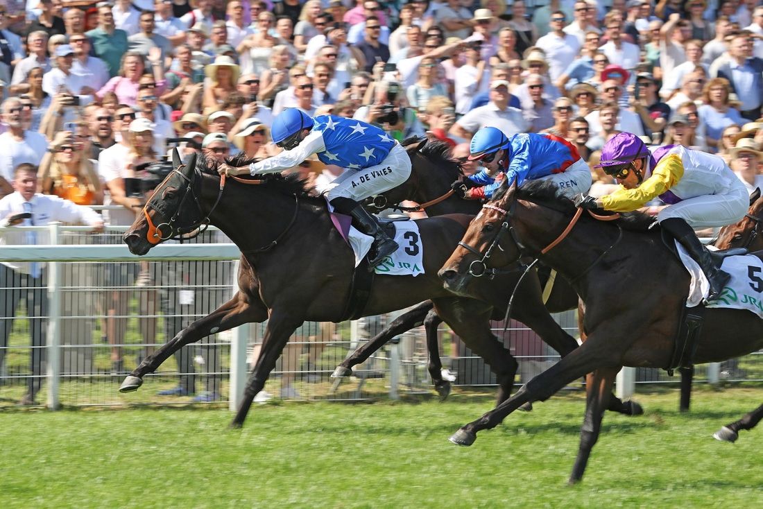 Nach dem Erfolg von Short Final am Donnerstag in der Kronimus Badener Meile wurde auch nach dem Japan Racing Association Derby-Trial (Gruppe III, 55.000 Euro, 2.000 m) am sonnig-heißen Samstag vor 9.600 Zuschauern die Marseillaise gespielt – dank Juwelier, der nach einem weiteren Klasseritt des wie entfesselt agierenden Top-Jockeys Adrie de Vries in dieser von einer der größten Rennsport-Organisationen der Welt gesponserten Derby-Vorprüfung einen minimalen Vorsprung nach Hause brachte.