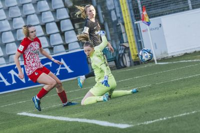 Und die Österreicherin wusste in ihrer etwas offensiveren Mittelfeldrolle sofort zu überzeugen: Die ersten Angriffe liefen über Schasching, nach fünf Minuten fand Marie Müller zum ersten Abschluss für den Sport-Club. Der SC startete engagiert und zeigte mutige erste Minuten: Schasching setzte beispielsweise Landsfrau Lisa Kolb auf deren linken Seite in Szene, deren Abschluss nach gut elf Minuten allerdings zu harmlos war. Und zwei Minuten später war es erneut Schasching, deren Schussversuch knappe zehn Meter vor der Frankfurter Torlinie geblockt wurde (13.). Den spektakulärsten Abschluss durfte jedoch Alina Axtmann für sich verbuchen: Nach einem Eckball kam die aufgerückte Innenverteidigerin zu einer Direktabnahme, die aus dem Rückraum nur knapp am Gehäuse vorbeiflog (16.).