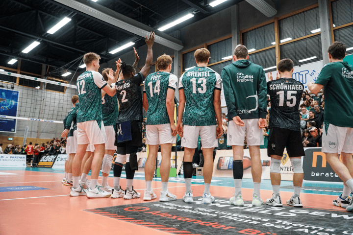 In einem äußerst wilden Spiel setzte sich die FT Freiburg am Mittwoch mit 3:1 (25:19, 22:25, 26:24, 25:22) gegen die cerebricks Volley Goats Mitteldeutschland im Heimspiel in der 1. Volleyball-Bundesliga der Männer durch.