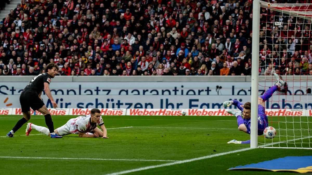 Die entscheidende Szene des Spiels ereignete sich in der 38. Minute: Nach einem langen Einwurf von Treu verlängerte Gladbachs Abwehrchef Diks den Ball unglücklich per Kopf an den zweiten Pfosten. Dort stand Matthias Ginter, der mit einem spektakulären Seitfallzieher das 1:0 für Freiburg erzielte. Der ehemalige Gladbacher verzichtete aus Respekt vor seinem Ex-Klub auf einen ausgelassenen Jubel.