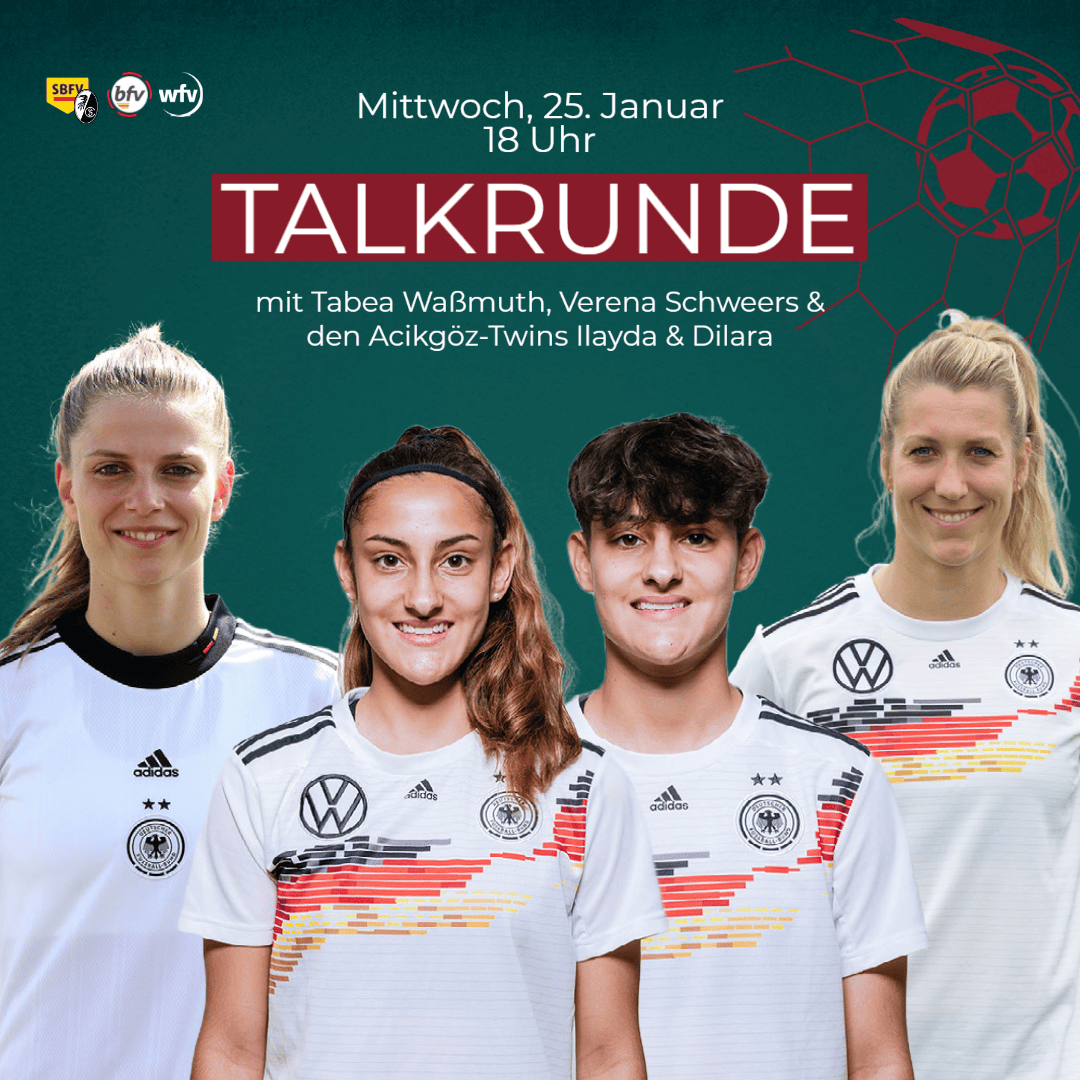 Die drei Fußballverbände in Baden-Württemberg veranstalten im Rahmen der #girlskickit-Kampagne die erste Maßnahme des Jahres 2023. Vier baden-württembergische Vorbilder werden in einer Online-Talkrunde der BW-Community Rede und Antwort stehen. Dabei dürfen sich alle interessierten Mädchen und Jungs am 25. Januar um 18 Uhr live über ein Team-Online-Event zuschalten.