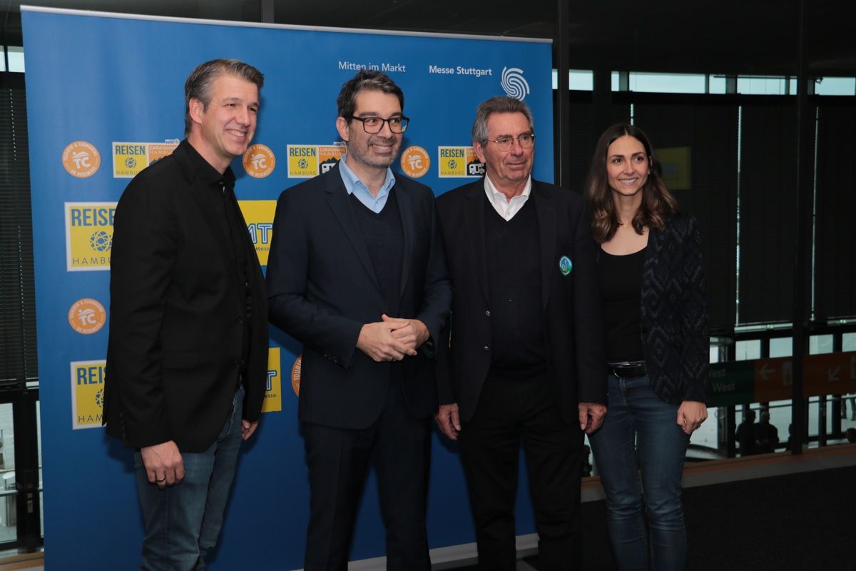 v.l.n.r.: Guido von Vacano (Bereichsleiter der Stuttgarter Publikumsmessen), Dr. Andre Baumann (Staatssekretär im Ministerium für Umwelt, Klima und Energiewirtschaft), Otto Leibfritz (BWGV Präsident) und Anja Straub (Managerin Messe- und Eventleitung Messe Stuttgart).