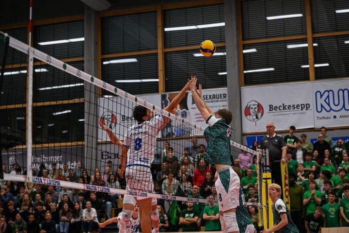 Der anfängliche Schwung der Affen wird jedoch allmählich gebremst. Mal ist es ein fehlendes Quentchen Glück, mal sind es suboptimale Lösungen im Angriff oder missglückte Feldzuspiele: Letztlich belohnt sich Freiburg zu selten für die eigene harte Arbeit. Hinzu kommt, dass Friedrichshafen der Favoritenrolle gerecht wird. Libero Lenny Graven führt eine starke Abwehrleistung an. Im Angriff weiß Nationalspieler Tim Peter zu überzeugen. Vor allem behält man auf Gästeseite die Ruhe. Lenny Graven dazu: „Wir haben heute wenig Fehler gemacht, die unnötig waren. Und wir haben es geschafft, immer besser, die schwierigen Situationen zu lösen.“