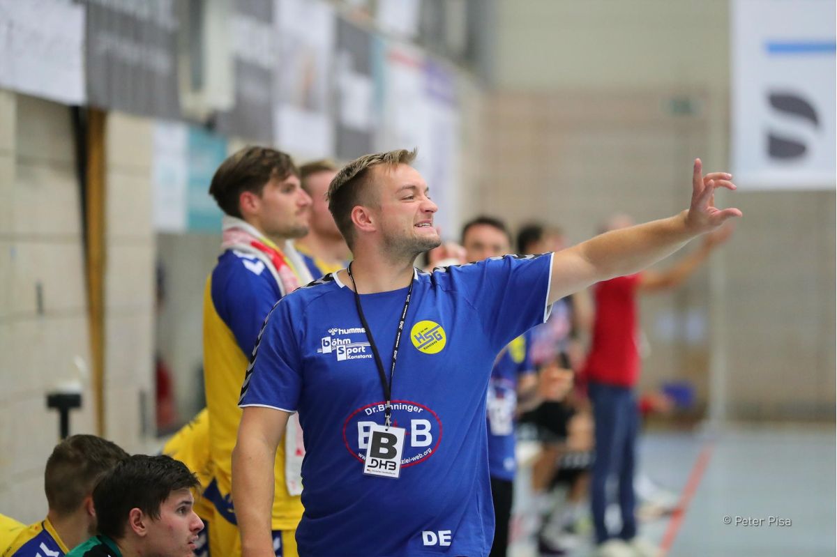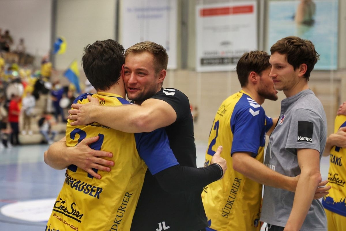 17 Spiele, 17 Siege, mit 34:0 Punkten die einzige verlustpunktfreie Mannschaft in Deutschlands drei höchsten Spielklassen, dazu eine Tordifferenz von plus 124 Toren. Die Statistiken und Resultate der HSG Konstanz in dieser Spielzeit sind beachtlich. Aber nicht das, worin Lützelberger und die HSG-Führung den höchsten Wert sehen. Die Aufgabe, die der ehemalige Bundesliga-Profi von Geschäftsführer André Melchert gestellt bekam, war „die jungen Spieler weiterzuentwickeln und besser zu machen. Das gelingt ihm sehr gut.“ Der HSG-Chef schätzt den „hohen Anspruch“, den Lützelberger an sich und seine Mannschaft stellt. „Jörg ist mit 100 Prozent dabei und perfektionistisch“, so Melchert. Gemeinsam ist es nun gelungen, Lösungen für den hohen Aufwand zu finden, den der junge, in Lindau wohnhafte Trainer für bis zu acht Trainingseinheiten pro Woche in Konstanz fahren muss. Ein wichtiger Baustein ist dabei ein starkes Trainerteam, das ihm zur Seite gestellt wird sowie die weitere Verbesserung der Struktur. „Jörg macht eine super Arbeit, findet das Gehör der Spieler, die das sehr gut umsetzen. Er bringt die Spieler alle weiter“, lobt Melchert. Umso höher sind diese Erfolge zu bewerten, da die HSG eines der jüngsten Teams der Liga ins Rennen schickt, das sich trotz der vielen Siege nach wie vor ein einem Entwicklungs- und Reifeprozess befindet.