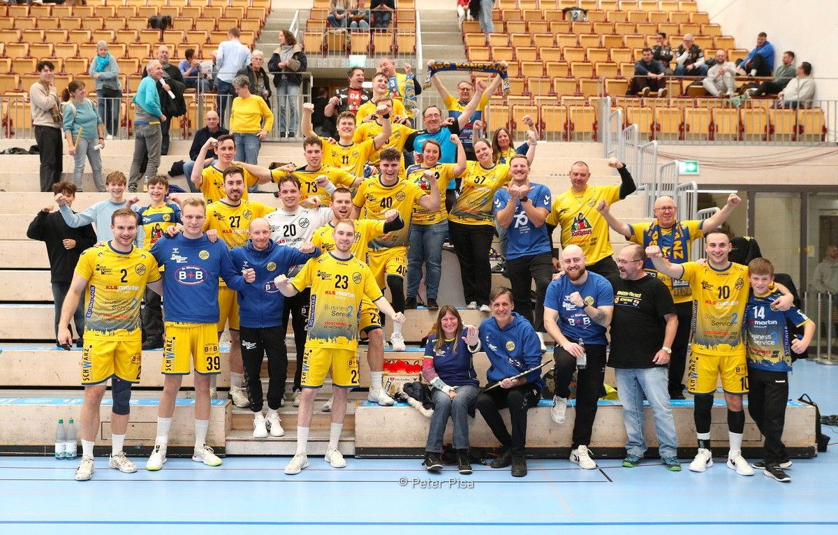 Aber die kampfstarken, entschlossen auftreten Konstanzer nicht aus der Bahn warfen. Wie wenig an diesem Spieltag. Mit hohem Einsatz in der Deckung erarbeiteten sich die Gelb-Blauen Minute für Minute Selbstvertrauen zurück. Gelangen Balleroberungen und leichte Tore über den weiterten Gegenstoß. Auch das gab Rückenwind. Ebenso wie die 9:6-Führung nach knapp zwölf Minuten. Manchmal stand sich Konstanz noch selbst im Wege und hätte bei bessrer Chancenverwertung von freien Gegenstößen und Durchbrüchen noch höher führen können – doch auf der Gegenseite stand mit Philippe Golla ein starker Schlussmann. Gleich zwei davon hatten die Konstanzer aufzubieten. Zunächst Routinier Konstantin Poltrum, später der junge Konstantin Pauli, der mit spektakulären Flugeinlagen rettete, als es wieder eng werden sollte. Als die Partie erneut zu kippen drohte.