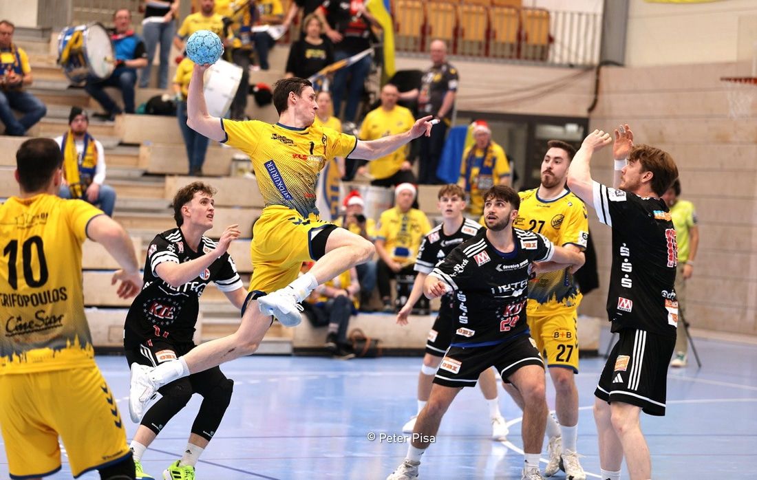Es war wieder ein Ausdruck der bemerkenswerten Leidensfähigkeit von Mannschaft, Verantwortlichen und Umfeld, die sich auch in einer der schwierigsten Phasen der Vereinsgeschichte als Einheit verstehen. Eine, die immer wieder aufsteht und alles versucht – auch wenn gerade vieles nicht nach Wunsch verläuft. Ein perfektes Spiegelbild für dieses Gefühl und dieses harte Jahr 2025 war der letzte Auftritt vor den eigenen Anhängern in diesem Jahr. Im Duell mit der Reserve des Erstligisten HC Erlangen zeigten sich die Gelb-Blauen nach dem mit zehn Minuten Verspätung erfolgten Anpfiff – die Gäste standen zuvor noch im Stau – zunächst fest entschlossen, das so wichtige Erfolgserlebnis zum Heim-Abschluss zu holen.