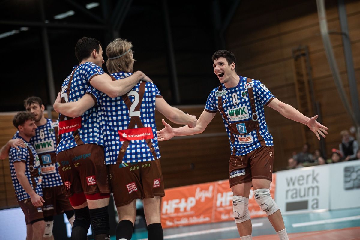Die Spieler der WWK Volleys Herrsching können ihr Glück nach dem Einzug ins Halbfinale des DVV-Pokals kaum fassen.