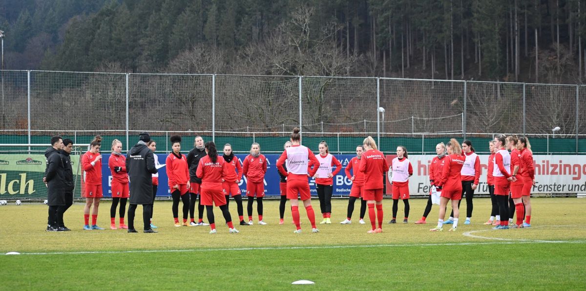 Vergangenen Sonntag starteten die Freiburgerinnen mit einem Auswärtssieg bei Eintracht Frankfurt in die Rückrunde. „Frankfurt ist eine gute Mannschaft mit viel Mentalität. Sie hatten mehr Ruhe am Ball und eine bessere Spielverlagerung, aber auch wir hatten ein paar gute Möglichkeiten“, so Daniel Kraus mit Rückblick auf die Begegnung. „Unser Spiel gegen den Ball und unser Umschalten waren gut, mit Ball müssen wir allerdings noch cleverer werden. Für uns war es wichtig, auch mal einen Gegner der ersten vier Plätze zu schlagen. Das Erfolgserlebnis nehmen wir jetzt mit und gehen mit breiter Brust und Vorfreude ins Heimspiel.“ Dabei muss Kraus neben den beiden Langzeitverletzten Jobina Lahr und Lina Bürger auch auf sechs weitere Spielerinnen verzichten, die zuletzt positiv getestet worden waren. Trotz leichter Symptome geht es den betreffenden Spielerinnen glücklicherweise gut, sodass sie nach Ablauf der Isolationszeit nächste Woche hoffentlich wieder in das Training einsteigen können. In Absprache mit dem Gesundheitsamt wird der Sport-Club die kommende Partie dennoch bestreiten: „Die Herausforderung gegen Bayern ist immer groß. Wie sprechen schließlich über den deutschen Meister. An der Herausforderung ändert auch die personelle Situation nichts. Wir haben großes Vertrauen in alle Spielerinnen und werden ein unangenehmer Gegner sein. Das hat uns in Frankfurt ebenfalls ausgezeichnet. Natürlich werden wir ein paar Dinge verändern müssen – wie das aussieht, werden wir dann am Samstag beim Anpfiff wissen“, erklärt Daniel Kraus. Es wird darum gehen, kompakt zu stehen, sich gegenseitig zu helfen, Räume eng zu machen und Umschaltmomente zu finden.