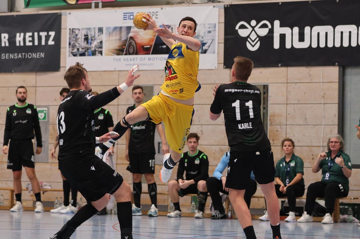 Ein komplett anderes Spiel bekamen die Zuschauer nach der Pause zu sehen. Die Blau-Gelben kamen wie verwandelt aus der Kabine. Waren nun griffig, entschlossen, viel variabler und ideenreicher und gingen auch im Angriff mit Überzeugung voll zur Sache. Nur sechs Minuten benötigten sie so, um die Hypothek aus dem ersten Durchgang zu egalisieren und zum 17:17 durch Lars Michelberger auszugleichen. Der traf in dieser Szene zum dritten Mal nach der Pause. Der Auftakt zu einer großartigen Vorstellung des HSG-Eigengewächses, das die Eulen nie in den Griff bekamen. Michelberger stand lange in der Luft und schleuderte die Bälle vornehmlich aus dem Sprungwurf in alle Ecken des Eulen-Kastens. Zwölfmal rief der Hallensprecher bis zum Ende den Namen Michelberger aus. „Es hat sich gut angefühlt“, strahlte der zwei Meter große Hüne. „Ich bin direkt gut reingekommen und dann lief es einfach.“