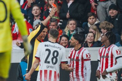 Nach dem Seitenwechsel erlebte die Partie eine Wendung, als Freiburgs Johan Manzambi nach einem Foulspiel an Olivier Deman die Rote Karte sah. Schiedsrichter Deniz Aytekin entschied nach Sichtung der TV-Bilder auf Platzverweis – eine harte, aber vertretbare Entscheidung.