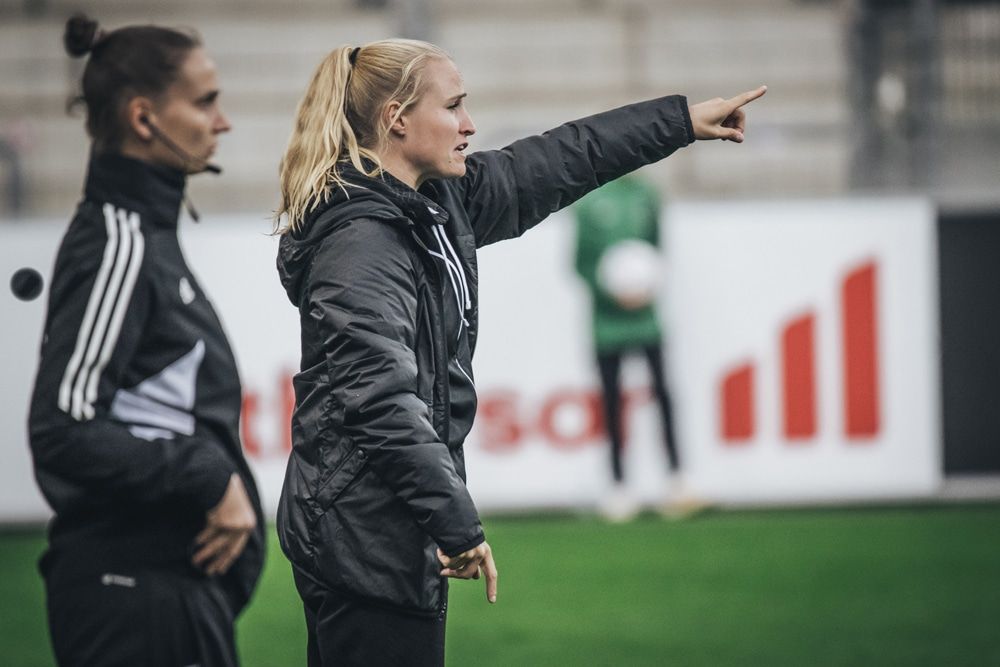 Freiburg, 31. März 2025 Theresa Merk trainiert die Bundesliga-Frauen seit der Saison 2022/23. Zuvor hatte die gebürtige Ravensburgerin als Trainerin des Schweizer Erstligisten GC Zürich und als Co-Trainerin des VfL Wolfsburg fungiert.