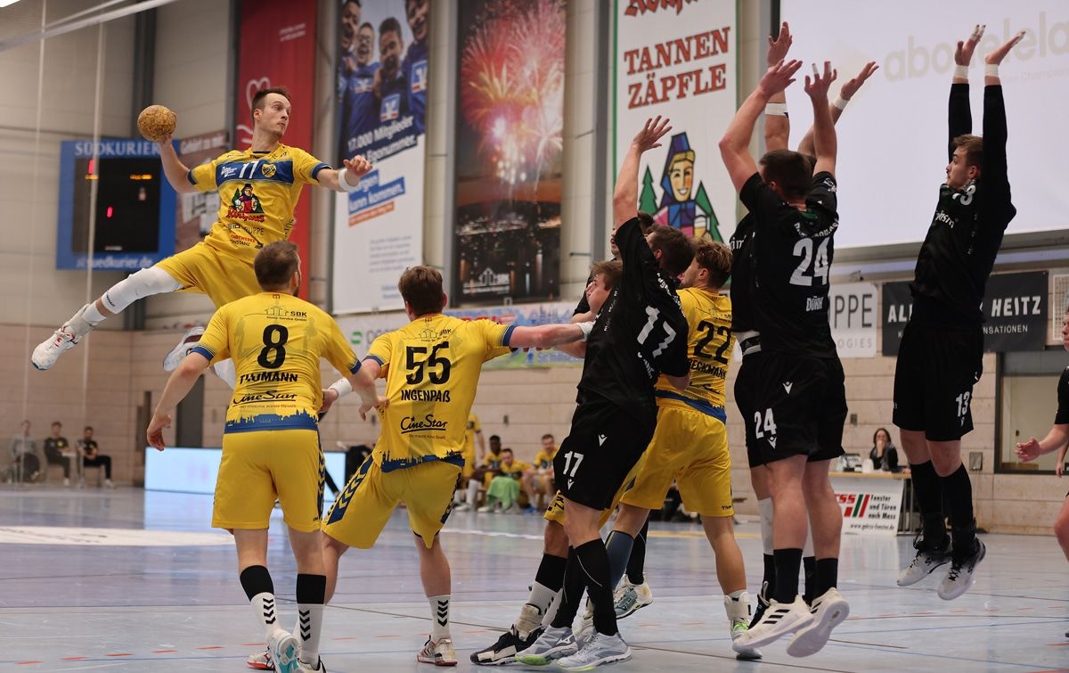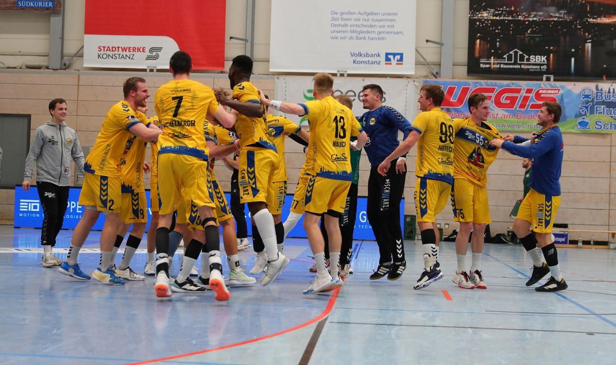 Es war alles irgendwie wie im Aufstiegsfinale gegen Wilhelmshaven. Die HSG Konstanz leistete sich von Beginn an viel zu viele technische Fehler, die der Gegner in leichte Tore ummünzte. Wirkte nervös, teilweise fahrig. Es blieb das Gefühl, dass viel mehr möglich wäre – alleine, sie brachte es nicht auf die Platte. Stattdessen zeigten die verletzungsgebeutelten Gäste Ruhe, Cleverness und hohe Effizienz. Auch sie waren nicht fehlerfrei, aber meist einen, wenn nicht gar zwei Schritte voraus. Bis plötzlich wieder einmal wie so oft die 1250 heißblütigen Fans zum X-Faktor wurden. 48 Minuten waren gespielt, als sich alle von ihren Sitzen erhoben hatten und sich auch bis zum Schluss nicht mehr hinsetzen wollten. Der Hexenkessel Schänzle-Hölle kochte. „Das hat nochmal sehr viel aus uns herausgekitzelt“, meinte dazu Matchwinner Lars Michelberger. „Ich war zwar schon echt am Ende, aber dachte mir: Jetzt nochmal alles reinhauen für die Fans.“ Plötzlich kippte eine Partie, die die Wölfe wenige Minuten zuvor noch komplett im Griff gehabt hatten. Mit 23:19 in Front lagen und auf sehr gutem Weg zum ersten Auswärtssieg der Saison waren.