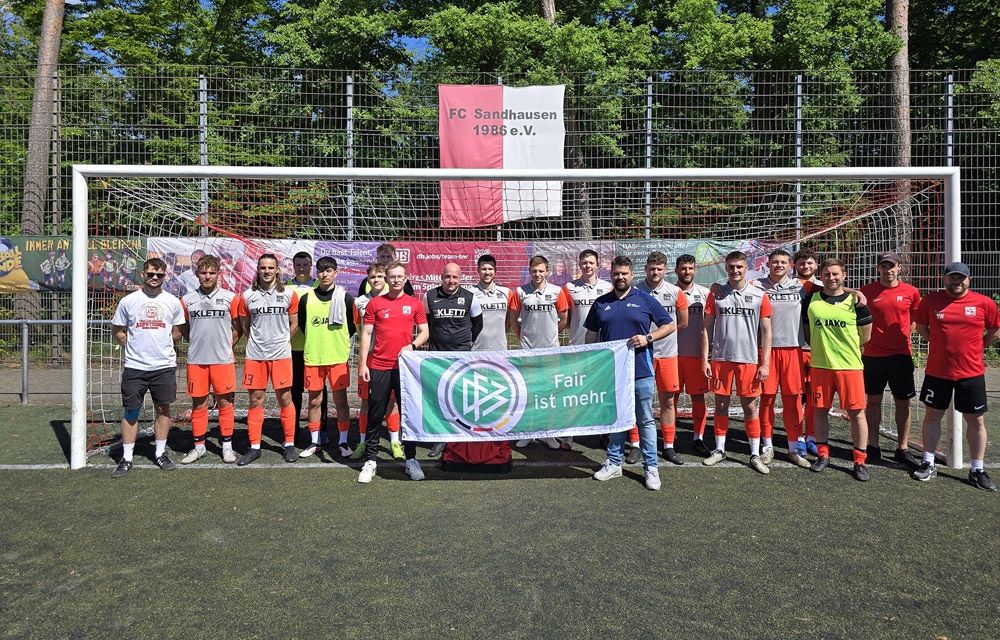 Karlsruhe. Ein starkes Zeichen für Fairness im Fußball: Oguz Yavuz von Türk Gücü Sinsheim, Jonathan Bering vom FC Sandhausen, Jakob Hirschberg vom FC Dossenheim und Dennis Bäuerle vom Karlsruher SV bewiesen, dass Fair Play für sie selbstFAIRständlich ist.