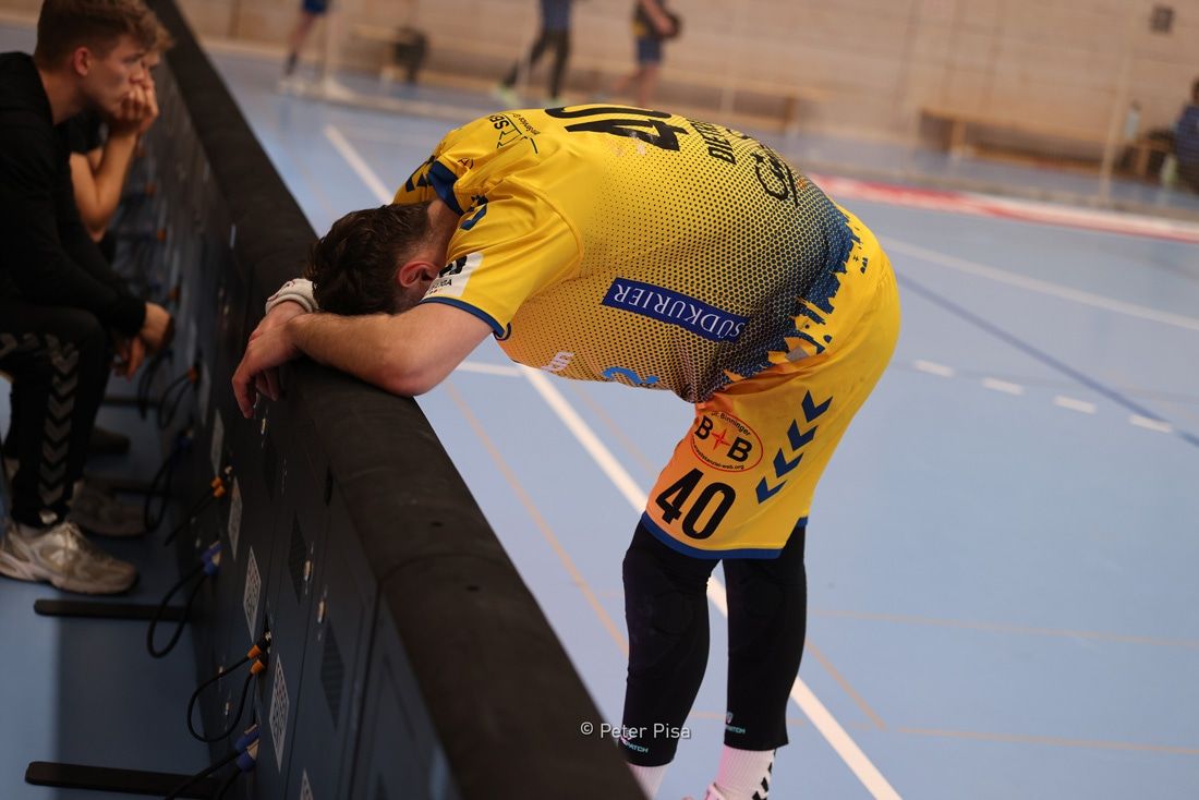 In der Folge entwickelte sich ein munteres Hin und Her. „Es war das erwartet intensive Spiel“, sagte Vitor Baricelli. Er hob hervor, dass es seiner Mannschaft bis hierhin oft gelungen war, gegen die starke Angriffsreihe des Spitzenreiters viele Unterbrechungen zu generieren und in das passive Spiel zu bringen. Doch weil die Abpraller zu oft beim Gegner und über Umwege doch noch im HSG-Tor landeten, konnten sich die Gelb-Blauen nicht ausreichend dafür belohnen. „Zu viele Fehler haben uns das Spiel gekostet“, so der HSG-Coach. Etwa falsche Entscheidungen und Zögern bei freier Bahn zum Abschluss und versuchten Abspielen – die sich prompt die „Lurchis“ krallten. Oder aber ein folgenschwerer Fangfehler beim 24:24 und der Chance zur erneuten Führung – stattdessen legte Jan Döll für die Gäste wieder vor (42.).