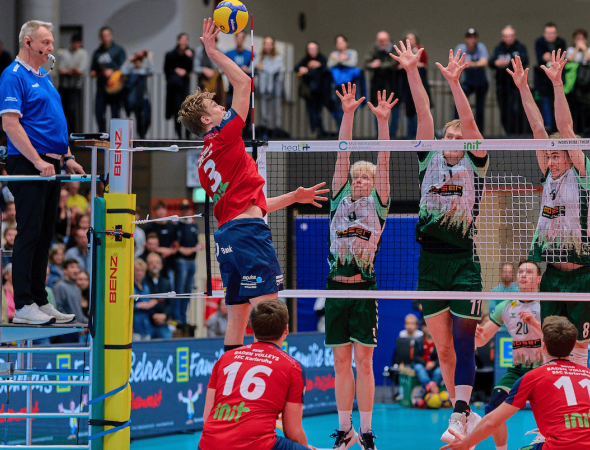 Die BADEN VOLLEYS SSC Karlsruhe gewinnen ein sehr ausgeglichenes Baden-Derby vor voller Hütte am Ende überzeugend mit 3:1 (25:18, 18:25, 25:21, 24:26) gegen die FT Freiburg.