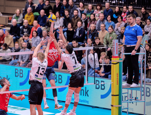 Karlsruhe (JM). Die BADEN VOLLEYS SSC Karlsruhe konnten mit einem denkbar knappen 3:2-Sieg (25:19, 24:26, 19:25, 27:25, 15:13) gegen den direkten Tabellennachbarn TSV Haching München den ersten Heimspielsieg i…