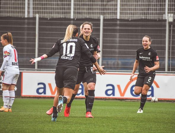 Für den SC trafen Giovanna Hoffmann, Hasret Kayikci und Jana Vojteková. Es war ein spektakulärer Auswärtssieg, den rund 30 SC-Fans mit der Mannschaft in Leverkusen feiern konnten. Zur Pause lagen die SC-Frauen…
